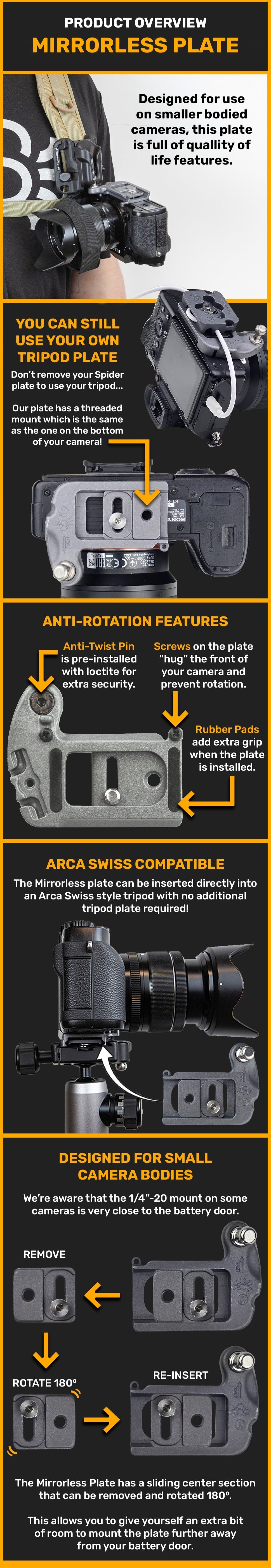 📷 PLATE DESIGNED FOR MIRRORLESS: Optimized for use on Mirrorless camera bodies, compatible with all major brands!