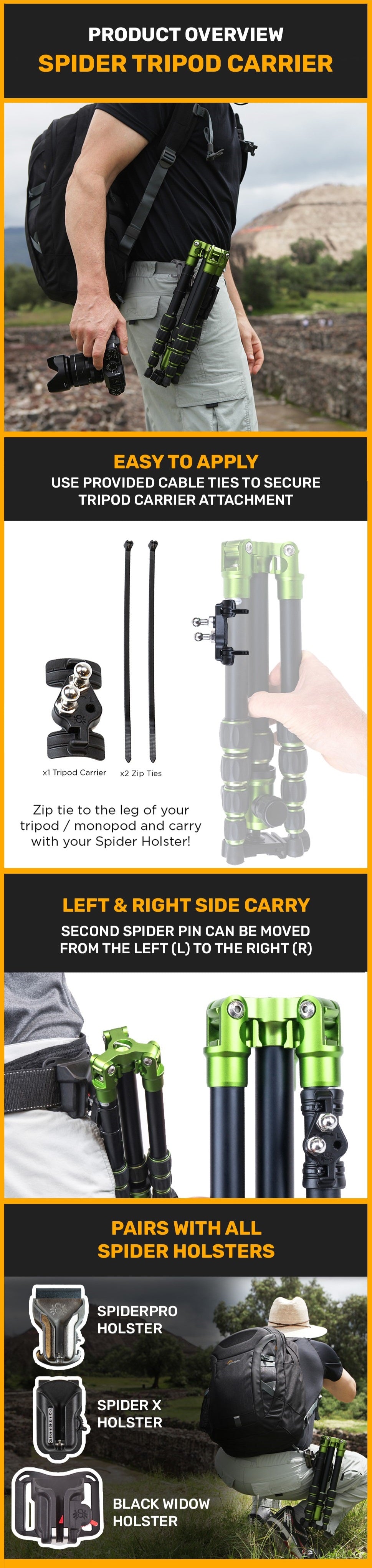 ✅ INCLUDES: 1 Spider Tripod Holster, 1 Tripod Leg Adapter + Pins