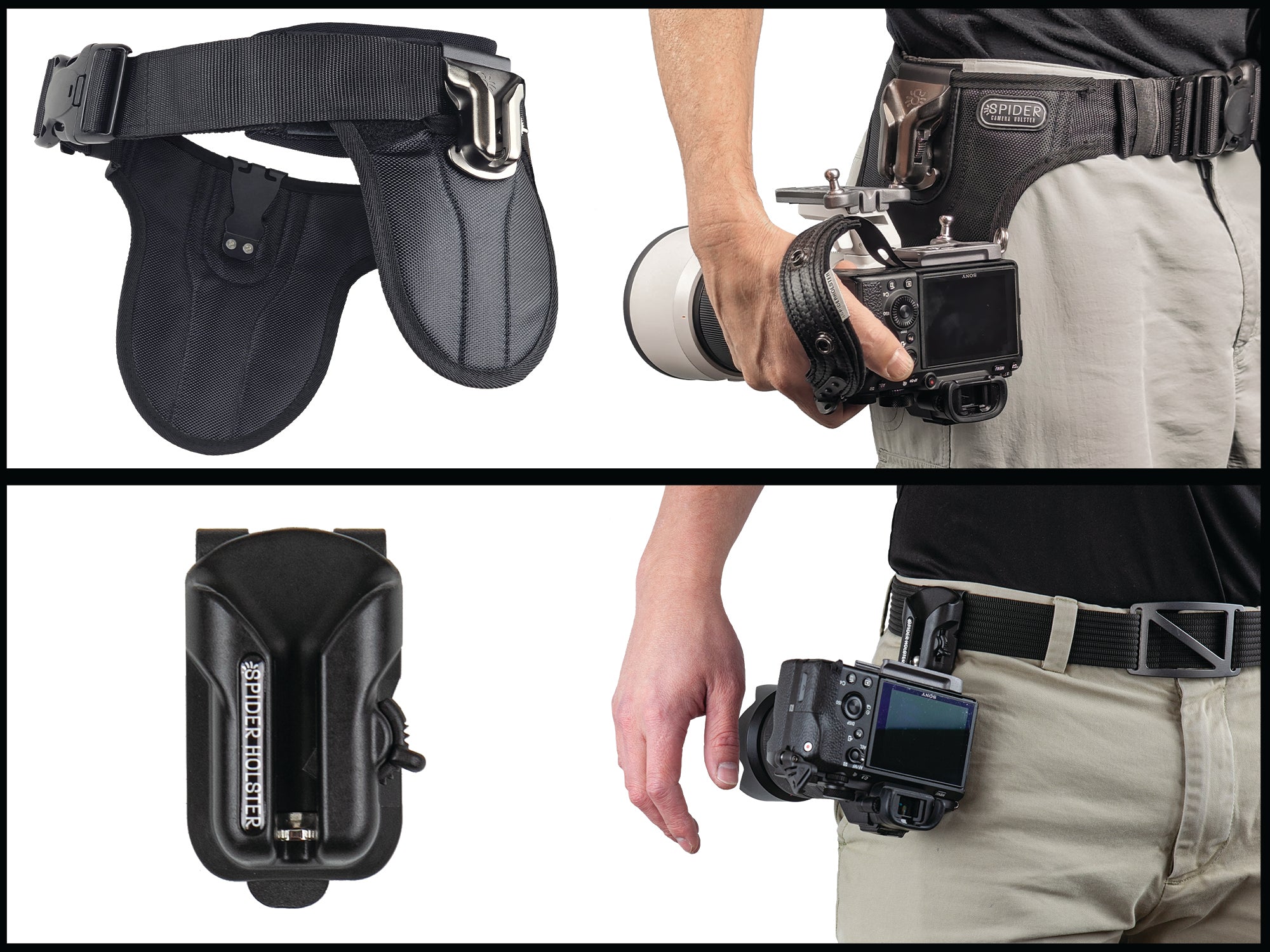 Spider Holster manufactures our own ergonomic and highly durable SpiderPro Belt which can hold up to (2) professional cameras.